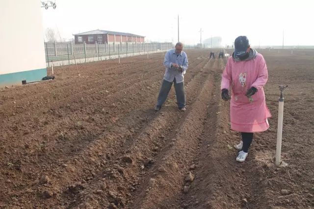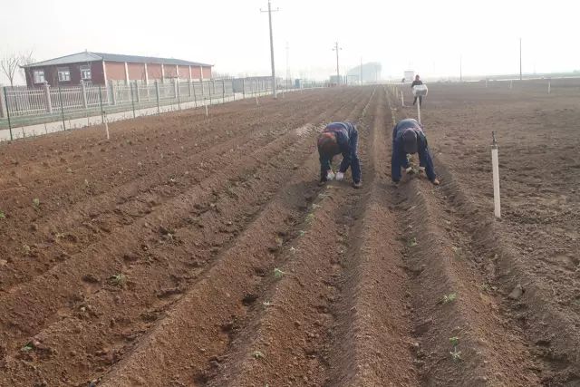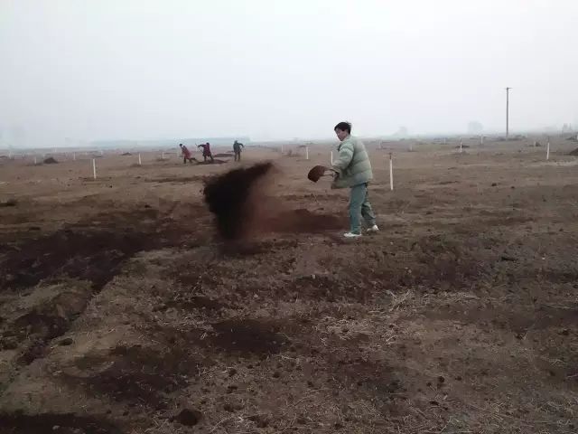 云臺冰菊基地人工施撒有機肥。